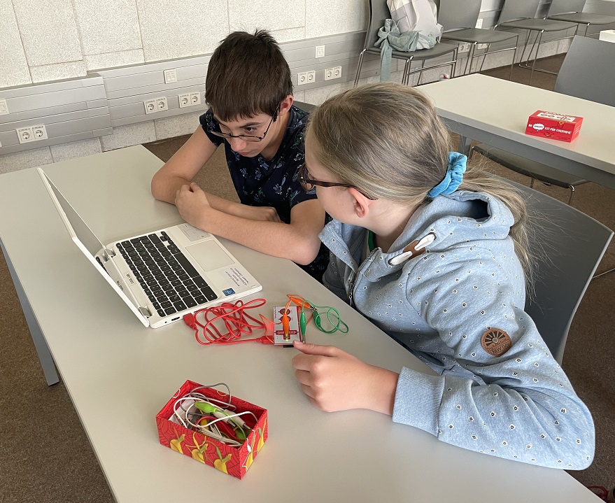 Dort tauchten die Schüler/innen zum einen in die Welt der Ozobots ein (Workshop „Robotics für Kinder“), zum anderen lernten sie spielerisch Stromkreise, Schaltungen und Leiterplatten kennen (Workshop „MakeyMakey - Baue deinen eigenen Controller“). Den Abschluss bildete eine Schnitzeljagd über das JKU-Gelände, wo auch der große Hörsaal bestaunt werden konnte. Nach diesen vielen Eindrücken ging es mit dem Zug wieder zurück nach Bad Goisern.
