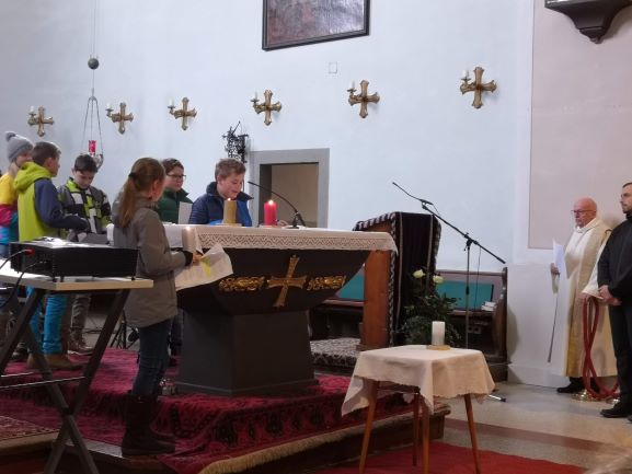 Kurz vor den Ferien und im Anschluss an zahlreiche kleine Klassenweihnachtsfeiern feierten wir auch heuer gemeinsam einen ökumenischen Weihnachtsgottesdienst in der kath. Kirche. Im Rahmen des Religionsunterrichtes erarbeiteten die SchüerInnen gemeinsam vier "Kerzen" des Adventkranzes. Die Kerzen der Liebe, Hoffnung, Geduld und Verzeihung leuchteten uns durch die Feier hinein in die wohlverdienten Ferien.